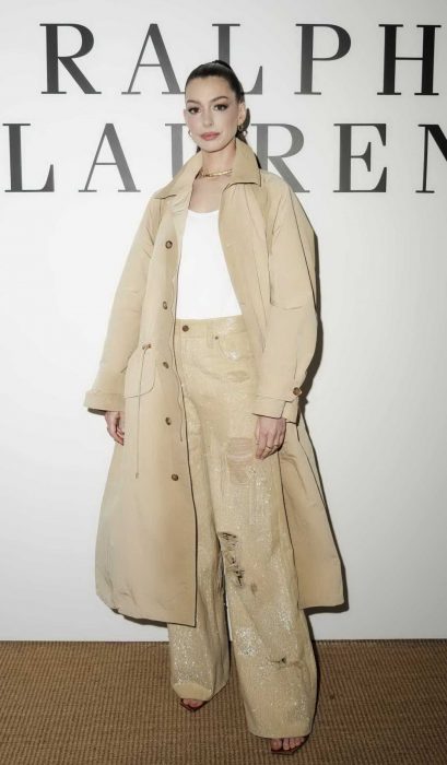 16 August 16, 2025 Anne Hathaway Anne Hathaway in a Beige Ensemble Was Seen on the Set of The Devil Wears Prada 2 in New York City 08/14/2025