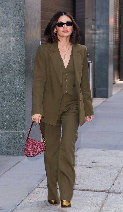 13 March 13, 2025 Lucy Hale Lucy Hale in an Olive Pantsuit Arrives at the Today Show in New York 03/10/2025