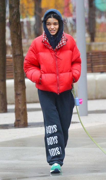 14 April 14, 2025 Rachel Zegler Rachel Zegler in a Red Jacket Walks Her Dog in New York City 04/12/2025